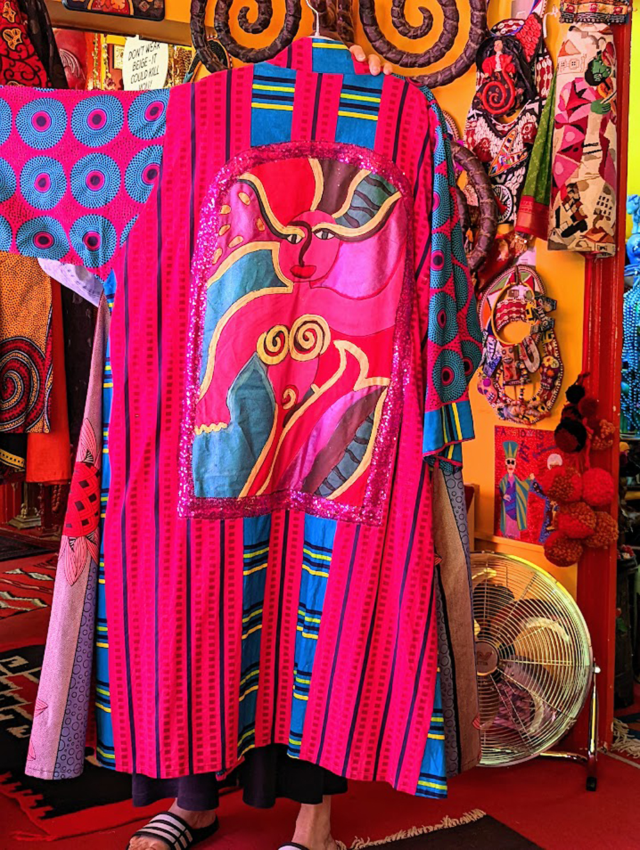 The above kimonos use Sue's paintings printed onto fabric and sewn onto them by her good friend, Artist and Craftsperson Diane Goldie. See more of Diane's work by clicking on the logo below: (opens in a new window)